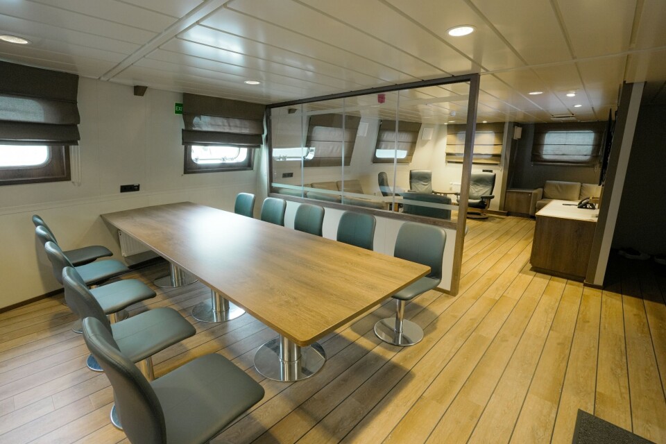 Møbler og interiøret er i tidsriktig design og farger levert av Maritime Montering AS. Messa er todelt med sitteplass til 10 personer, samt en sittegruppe og sofa foran Tven i loungen i messa. Lyse og romslige lugarer med bad og dusj, som høyner komforten for mannskapet ombord. Lys innvendig og utvending er levert av Glamox.